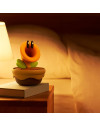 Puedes dejar que hable cuando le plazca o pulsar el botón para que lo haga al instante. Además, si pulsas el botón varias veces... ¡puede que incluso te sorprenda con alguna frase especial! También puedes hacer que te salude cuando te levantes o que te mande a la cama con una sonrisa.
