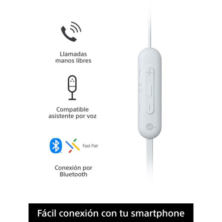Los Sony WI-C100/WZ UC Blancos son audífonos inalámbricos tipo collar diseñados para ofrecer comodidad, estilo y un sonido equilibrado durante todo el día. Su acabado blanco aporta una apariencia limpia y moderna, mientras que su diseño ultraligero permite usarlos durante largas sesiones sin fatiga. Equipados con controladores dinámicos de alta calidad, ofrecen un audio nítido, con voces claras y graves equilibrados, ideales para música, llamadas o contenido multimedia. Además, son resistentes a salpicaduras con certificación IPX4, permitiendo utilizarlos incluso bajo lluvia ligera o durante entrenamientos moderados.