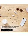 Su batería de larga duración brinda hasta 25 horas de reproducción, y la función de carga rápida permite obtener 60 minutos de uso con solo 10 minutos de carga. Cuentan con conectividad Bluetooth, controles integrados para gestionar música y llamadas, y compatibilidad con los asistentes de voz del teléfono. También incluyen la tecnología DSEE, que restaura detalles perdidos en la compresión del audio, ofreciendo una experiencia más completa. Su diseño magnético evita enredos y facilita llevarlos alrededor del cuello con total comodidad.