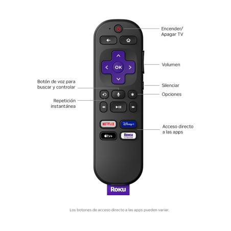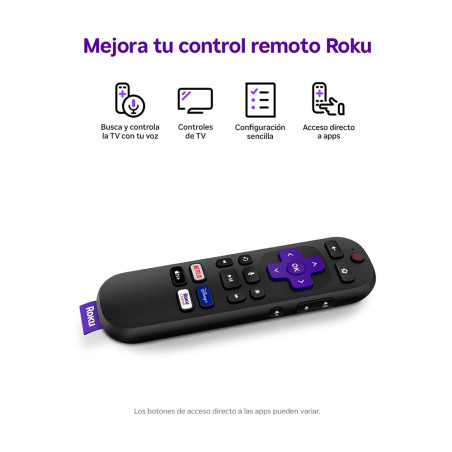 Este control remoto cuenta con conectividad estable y respuesta rápida, asegurando una comunicación eficiente con Roku TV y reproductores compatibles. El micrófono integrado reconoce comandos de voz con precisión, permitiendo realizar búsquedas de películas, series o canales de forma natural. Incluye botones dedicados para accesos directos a servicios de streaming populares, así como controles de volumen y encendido para una experiencia unificada con el televisor. Su construcción ligera y resistente lo hace ideal para uso diario, convirtiéndose en un complemento esencial para sacar el máximo provecho del ecosistema Roku.