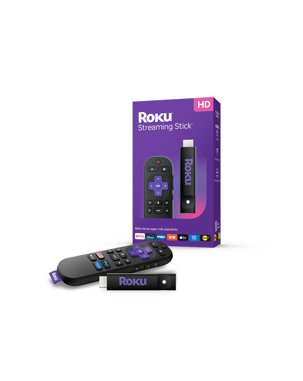 🎮 Roku Streaming Stick HD 3840 MX 🎮 Control remoto por voz 🎮 Cable HDMI integrado 🎮 Cable USB de alimentación y adaptador de corriente 🎮 Manual de usuario