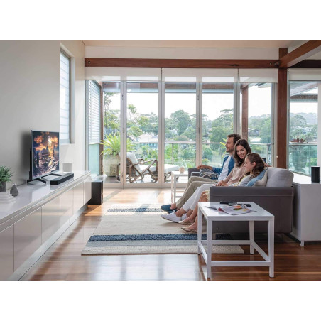El HT-S20R incluye conectividad HDMI ARC, entrada óptica y USB, lo que facilita su integración con televisores modernos y múltiples dispositivos. Su subwoofer dedicado refuerza las bajas frecuencias, mientras que las bocinas traseras proporcionan un verdadero efecto surround, generando mayor profundidad y realismo en cada escena. También incorpora conectividad Bluetooth para reproducir música de forma inalámbrica desde smartphones o tablets. Con controles intuitivos y distintos modos de sonido optimizados para cine, música y voz, este sistema ofrece versatilidad y potencia en un solo paquete.