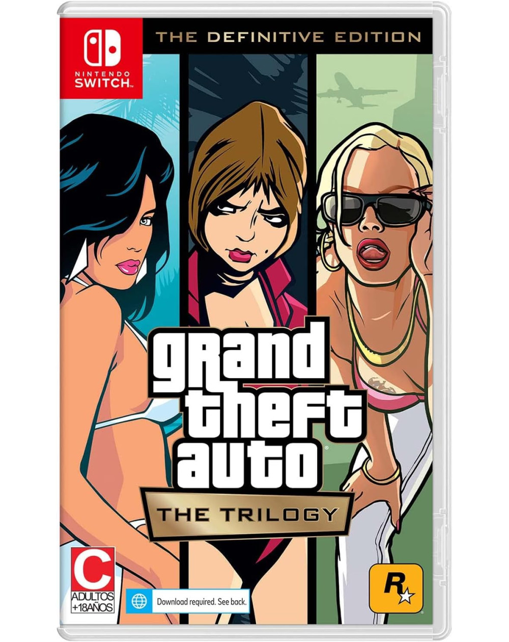 Grand Theft Auto: The Trilogy – The Definitive Edition reúne tres de los títulos más influyentes en la historia de los videojuegos —GTA III, GTA: Vice City y GTA: San Andreas— completamente remasterizados para Nintendo Switch. Esta colección revive las historias, personajes y ciudades que marcaron generaciones, ahora con mejoras visuales, controles actualizados y un rendimiento optimizado para jugar en cualquier lugar. Explora la evolución de la saga desde Liberty City hasta Los Santos en una experiencia llena de acción, humor, libertad y narrativa cinematográfica que definió el género del mundo abierto.