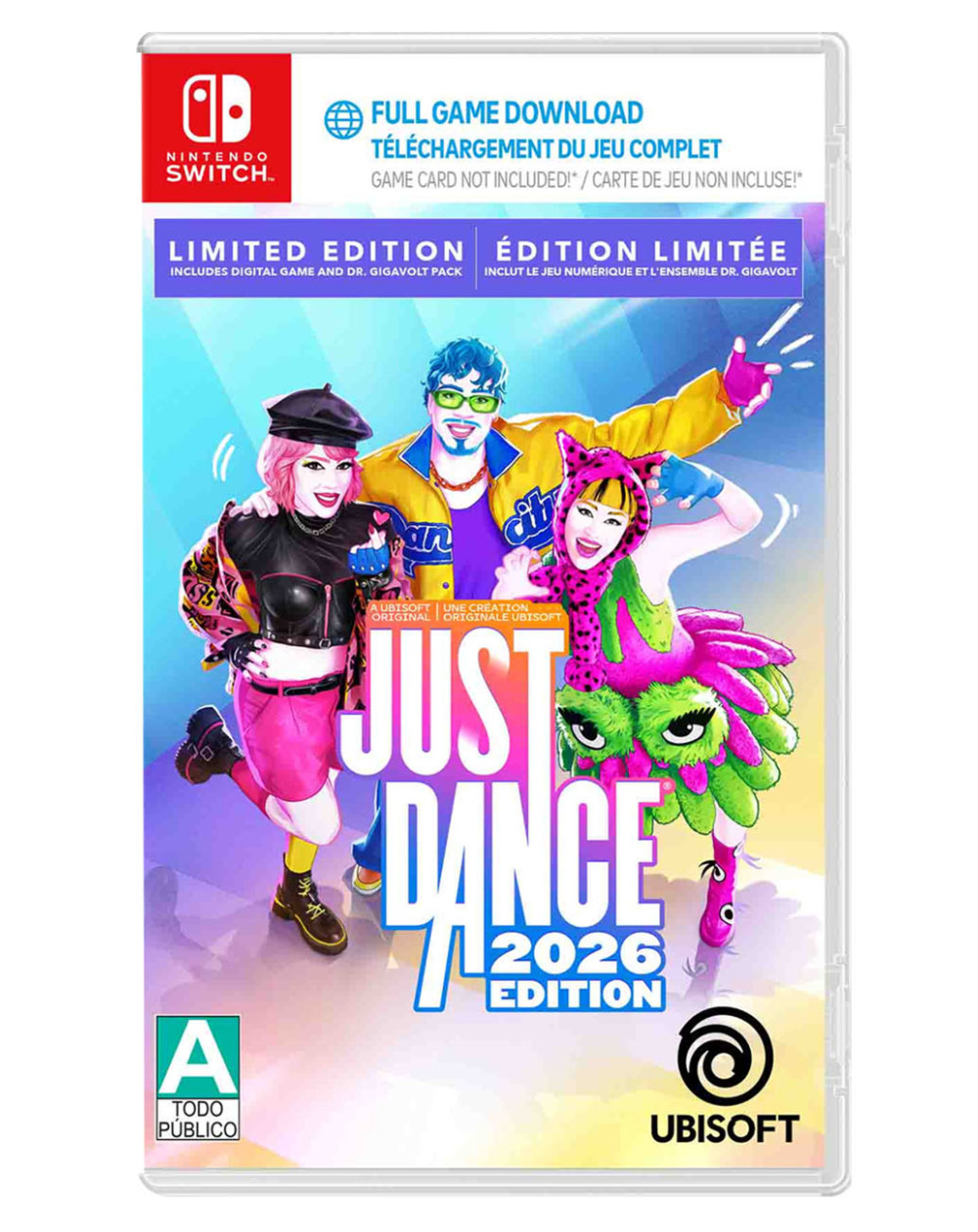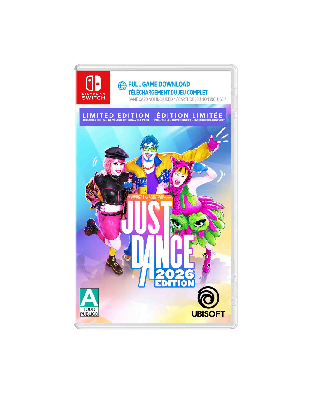 El juego aprovecha al máximo los controles por movimiento de Nintendo Switch, permitiendo usar el Joy-Con como sensor de movimiento para seguir las coreografías de manera precisa y sencilla. Incluye múltiples modos de juego pensados para distintos estilos de jugador, desde sesiones casuales hasta rutinas más intensas enfocadas en el ejercicio y la constancia. Además, Just Dance 2026 mantiene la integración con funciones en línea, rankings y desafíos que amplían la rejugabilidad y la competencia amistosa. Gracias a su formato digital activado desde el empaque, el juego permite acceder rápidamente al contenido y recibir actualizaciones que mantienen la experiencia fresca y actualizada.