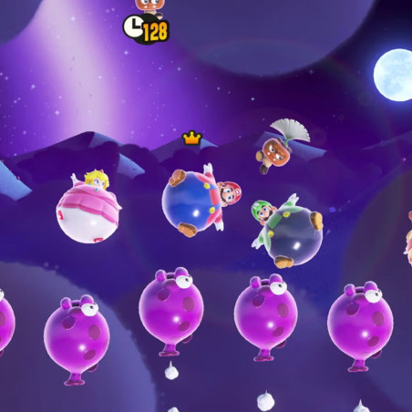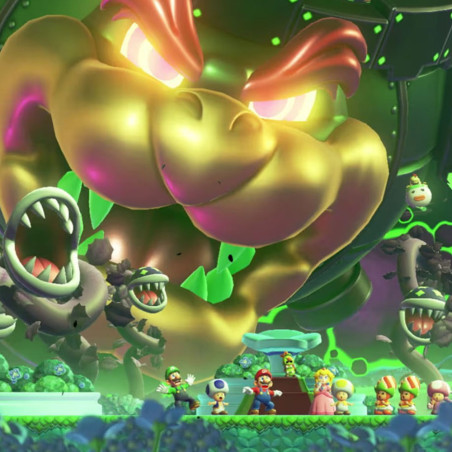 - Mira cómo las tuberías cobran vida, crea caos como una enorme bola con picos y sé testigo de más eventos inesperados y maravillosos. Elige entre heroicos personajes de Super Mario y mejoras